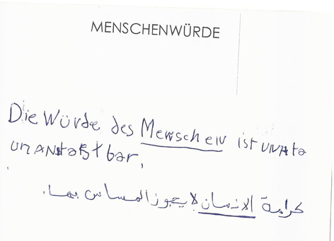 ....... mit meinem Projekt zum Thema Menschenwürde trete ich seit einigen Jahren in einen Dialog mit der Öffentlichkeit. Das Selbst als das Fremde und Andersartige tritt in Dialog mit dem Gegenüber. Anhand fotografischer und filmischer Skizzen sowie Tagebucheintragungen, in Gesprächen mit Passanten, mit Flüchtlingen und Anwohnern diskutiere ich den Begriff der Menschenwürde.